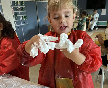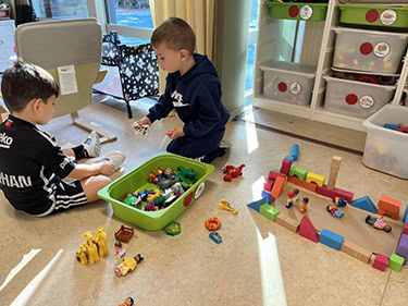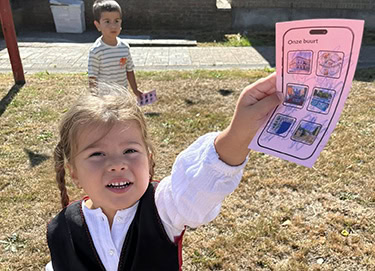 Samen verkennen we rijke thema’s: de seizoenen, dieren, boodschappen doen, bouwen, tellen, vormen herkennen en de eerste stappen zetten richting schrijven.