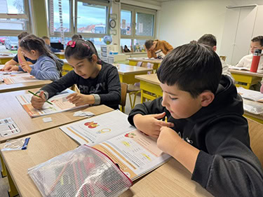 Ze schrijven kleine tekstjes, oefenen nieuwe spellingpatronen en worden stap voor stap taalvaardiger.