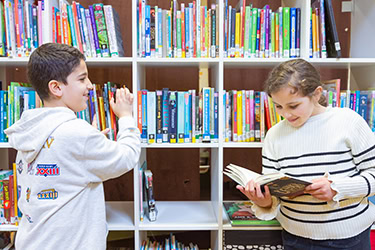Elke klas heeft een uitgebreide collectie boeken en we gaan ook wekelijks met de kinderen naar de openbare bibliotheek die aan onze school grenst. Zo leren we de leerlingen bewust boeken kiezen.