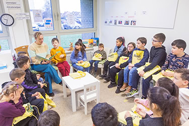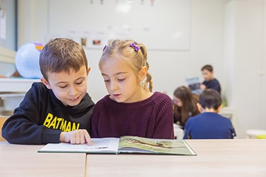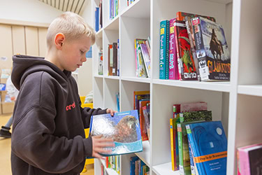 Elke klas heeft een uitgebreide collectie boeken en we gaan ook wekelijks met de kinderen naar de openbare bibliotheek die aan onze school grenst. Zo leren we de leerlingen bewust boeken kiezen.